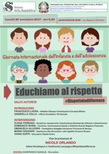 Novara - Lunedì 20 novembre a partire dalle 9.30 è in programma l'incontro Educhiamo al Rispetto. Rispetta le differenze, promosso dal Senato della Repubblica in Occasione della Giornata Internazionale dell’Infanzia e dell’Adolescenza e organizzato dall’Ufficio Scolastico Regionale per il Piemonte Ambito Territoriale di Novara presso l’Auditorium Banco Popolare. La Senatrice Elena Ferrara, componente delle Commissioni “Bicamerale Infanzia e Adolescenza” e Istruzione e Cultura, interverrà anche in qualità di promotrice e prima firmataria della legge 71/17 “Disposizioni a tutela dei minori in materia di cyberbullismo”, dando notizia delle recenti applicazioni della normativa in campo formativo, preventivo, giuridico e amministrativo.