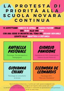 Novara - Priorità alla scuola Novara torna in piazza con gli ormai consueti appuntamenti di venerdì e sabato, per riaffermare il diritto all'istruzione per tutti e per chiedere la riapertura di tutte le classi delle scuole secondarie di primo grado, delle superiori e dell'università. Spiegano: "Ribadiamo che la scuola è essenziale e si fa in presenza per garantire il corretto percorso educativo dei ragazzi, costruito su confronto, relazione e socialità, che da un anno a questa parte gli sono stati sottratti. L'emergenza sanitaria si è trasformata in emergenza educativa, sociale, culturale, psicologica e sabato 10 aprile 2021, in piazza Puccini, dalle 15 alle 17 ci saranno con noi i seguenti ospiti che ci porteranno la loro testimonianza: - Giovanna Chiari (psicologa al Consultorio di Arona); - Eleonora de Leonardis (psicologa all'Istituto Comprensivo Rita Levi Montalcini); - Giorgio Panigone (Presidente FISM - Federazione Italiana Scuole Materne); - Raffaella Pasquale (psicologa, psicoterapeuta e pedagogista). Vi aspettiamo numerosi e motivati per riaffermare che "La scuola è aperta a tutti [...]", come sancisce l'art. 34 della Costituzione e che la DAD non è scuola. Il futuro è un presente di cui avere cura. Venerdì 9 aprile, piazza Puccini, ore 8-14 DAD in piazza; sabato 10 aprile, piazza Puccini, ore 15-17. Interventi e testimonianze sul disagio giovanile ai tempi della DAD. Le manifestazioni si svolgeranno nel rispetto delle norme anticovid. In caso di pioggia le iniziative saranno rimandate".