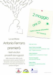 Romentino - Lunedì 2 maggio alle ore 21 presso il Centro Culturale di Romentino in via Donati Antonio Ferrara (scrittore e illustratore) premierà i testi prodotti, all'interno del laboratorio di scrittura per emozioni, dai ragazzi delle classi prime della scuola secondaria di primo grado Pastore. La serata sarà anche un occasione per parlare della scrittura e della letteratura per ragazzi come mezzo per promuovere il benessere psciologico. Presenzieranno l'assessore Maria Cristina Garavaglia, la dirigente scolastica Alida Colombano, il neuropsichiatra infantile Maurizio Stangalino e lo psicoterapeuta referente dello Sportello Psicologico Filippo Mittino.