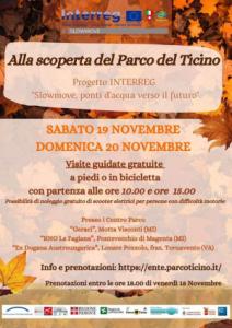 Magenta - Iniziativa dell'Ente di gestione delle aree protette Ticino e lago Maggiore nell'ambito del progetto Interreg Italia-Svizzera “Slowmove”, del quale la Provincia di Novara è capofila italiano. Il 19 e il 20 novembre alla scoperta delle bellezze naturali in bicicletta. Per informazioni e prenotazioni è possibile consultare il sito https://ente.parcoticino.it.
