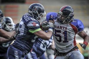 Milano - Il paziente non è guarito, ma è certamente sulla via della convalescenza.La miglior medicina è sempre rappresentata dalla vittoria che diviene ancora più efficace se questa giunge al termine di una cavalcata di tre ore, chiusa da un over time proibito ai deboli di cuore. I Seamen sconfiggono i Giants, 7 a 6 al Vigorelli, e buona parte delle paure che li ha attanagliati nell’ultimo mese, mettendo le mani, come obiettivo minimo in vista della sfida tra Panthers e Rhinos, sul secondo posto del girone nord. Per raccontare l’ultimo impegno di stagione regolare ci affidiamo inzialmente ai numeri a dir poco curiosi del match, dal punteggio di zero a zero al termine dei tempi regolamentari ai tre intercetti di un incontenibile Paul Morant, dai due touchdown annullati alla Milano blue navy al drive che porta gli stessi a lasciare il pallone a tre centimetri dalla end zone atesina, replicato dall’errore che impedisce a 40 secondi dalla fine della partita di allestire il field goal che avrebbe permesso a Stefano Di Tunisi di chiudere il discorso. In una gara dominata dalla difese, in cui gli attacchi stentano a muovere il pallone, le maggiori opportunità capitano ai padroni di casa, capaci di mettere la testa nella red zone avversaria in varie occasioni, ma mai in grado di stoccare il colpo decisivo. I Giants, dal canto loro, hanno l’unica possibilità di realizzazione nel secondo quarto quando un provvidenziale intervento di Alessandro Viatore, una sicurezza in difesa, separa il ricevitore avversario dal pallone per quello che sarebbe stato un sicuro touchdown. Nell’over time, nonostante le penalità li mettando in condizione di giocare un secondo tentativo e 25, i tricolori spediscono in end zone Filippo Fiammenghi con una splendido passaggio nel corner destro di Jonathan Dally. La trasformazione addizionale, da un punto,di Stefano Di Tunisi si rivela decisiva perchè dopo aver marcato la meta con una corsa di Paul Morant i Giants giocano l’azzardo della conversione da due punti finendo col cedere il pallone a una yarda dal sogno. I Seamen possono finalmente lanciare un urlo liberatorio che vale il primo turno di play off al Vigorelli. Se i campioni d’Italia riusciranno a recuperare nella piena condizione fisica elementi del calibro di Mattia Binda, solo per fare un nome nella lunga “injury list” che falcidia il roster e la giusta condizione mentale, nulla sarà precluso e l’assalto al terzo Super bowl consecutivo potrà divenire realtà.