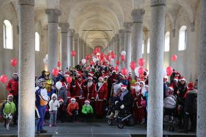 Vigevano - Ieri mattina, domenica 18 dicembre, a Vigevano oltre 400 persone hanno deciso di sfidare la nebbia e il freddo per correre per una buona causa prima di correre a fare i regali. I partecipanti alla 3^ Scarpadoro di Babbo Natale sono stati accolti nel Castello di Vigevano da una giornata particolarmente umida e fredda ma il sorriso dei bambini e lentusiasmo di tutti, grandi e piccini, è servito per riscaldare latmosfera e ricreare quello spirito gioioso proprio delle festività natalizie. A far divertire i più piccoli ci hanno pensato poi come sempre i super eroi del gruppo Escape Team assieme al draghetto del gruppo Corso Torino cè che, con centinaia di palloncini colorati di bianco e di rosso offerti dallamica della Scarpadoro Olga Vendittelli, hanno reso ancora più colorata questa giornata.