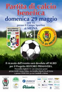 Meina - L’Associazione Genitori Bambini Down di Arona vi invita domenica 29 maggio presso il campo sportivo di Meina alla “Partita di calcio Benefica”. Il ricavato dell’evento sarà interamente devoluto all’AGBD per il Progetto Ristoro Primavera. La prevendita dei biglietti del costo di 1 euro con estrazione premi è effettuata presso AGBD Arona, via M. della Libertà 36 ad Arona e presso L’Edicola, in piazza Carabelli a Meina.