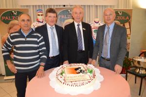 Borgomanero - Reca in primo piano il logo della Palzola, il noto caseificio di Cavallirio produttore del rinomato gorgonzola, la nuova divisa della Cicloamatori di Borgomanero. Il sodalizio ciclistico-amatoriale, che raggruppa una quarantina di persone e giunto alla soglia degli oltre cinque lustri di attività, nella prossima stagione di gare indosserà i colori si della Palzola, ma uniti a quelli della Città di Borgomanero, del pastificio Fontaneto, Lorenzo Zanetta, Impianti termoidraulici Antonio Bartiromo, Fapas, Cicli Franco e dell'Italia. Per festeggiare la chiusura della stagione sportiva, come vuole una ben consolidata tradizione, nella serata di sabato 5 dicembre al ristorante "da Paniga" si sono tenete le premiazioni degli atleti che si sono maggiormente distinti durante le gare targate 2015: 4 gare organizzate "in casa" (due veloci ed altrettante cicloturistiche) e una ventina "in trasferta". La Cicloamatori Borgomanero, durante l'anno in corso, ha voluto ricordare Pasqualino Fornara, vincitore di ben 4 giri della Svizzera nel venticinquesimo anniversario della scomparsa, con un volume. Fornara è stato uno dei fondatori della Cicloamatori agognina. Domenica 20 dicembre, in tarda mattinata, sarà inaugurato il monumento dedicato a Lino, fortemente voluto dalla compagine ciclistica, nella rotonda di Matteotti, davanti all'edificio che ospita la Polizia Urbana. <<La Cicloamatori Borgomanero - ha sottolineato il presidente Giorgio Medina durante il suo intervento - propone un ciclismo non agonistico sul territorio, partecipando al campionato provinciale di cicloturismo>>. Il sodalizo vede alla guida Giorgio Medina, coadiuvato dal presidente onorario Giancarlo Marcodini, dal vice Umberto Zilio, dal segretario Antonio Bartilomo e dal cassiere Piercarlo Creola. I consiglieri sono: Attilio Barcellini, Felice Calabrese, Carmelo Crobu, Teodomiro Di Sabato, Angelo Fornara e Graziano Monzani. Premiati, tra i tanti, Giorgio Medina con più di tremila chilometri percorsi durante il 2015, seguito da Vincenzo Ognibene con 2.152 chilometri, Antonio Bartiromo, 2.046 chilometri percorsi e Graziano Monzani, 1.936 chilometri percorsi. Alla serata hanno preso parte Pippo Fallarini, professionista d'eccellenza di qualche anno fa e Ugo Manini, 79 anni, postino volante.