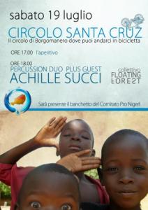 Sabato 19 luglio - dalle ore 18 la giornata sarà dedicata alla musica e alla solidarietà. Davide Merlino e Andrea Cocco del collettivo Floating Forest suoneranno con Achille Succi, uno dei talenti più interessanti nel panorama dei musicisti italiani. Ha studiato al "Berklee College" di Boston e a "Siena Jazz", dove oggi è docente. Ha collaborato con Dave Liebman, George Russell, Kenny Wheeler, Steve Coleman, Ernst Reijseger, Carla Bley, Louis Sclavis, Bruno Tommaso, la New Jungle Orchestra di Pierre Dørge, l'Italian Instabile Orchestra etc., suonando in varie nazioni. La giornata sarà inoltre dedicata alla solidarietà con la partecipazione del Comitato Pro Niger (nella foto), che da oltre 10 anni realizza progetti a sostegno delle popolazioni del Niger realizzando pozzi, scuole, orti e molto altro...
