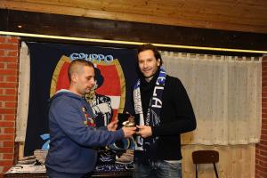 Carpignano Sesia - Ha ripreso vigore ed entusiasmo il gruppo carpignanese di tifosi del Novara Calcio, dal Settembre 2011 presente in Curva Nord al "Piola" con il suo particolare striscione, dal campo blu con al centro lo scudo rosso crociato simbolo di Novara, su cui è sovvrapposta la figura della maschera carnevalesca locale in "frac", cioè il "zuclon", che prende il nome dalla antica calzatura dei contadini locali, dal calzare in pelle con la suola di legno, lo zoccolone appunto. Il 4 dicembre scorso, presso l'agriturismo La Baraggiola di Sizzano (NO), il Gruppo ha premiato con il "1° Zuclon d'argento 2014" l'attuale bandiera del Novara, il capitano Carlalberto Ludi che da ormai nove anni veste la prestigiosa maglia azzurra. E' intenzione del gruppo di tifosi continuare a donare questo prestigioso trofeo in puro argento ogni anno ad un giocatore che si è particolarmente distinto durante il campionato. Forza Novara.
