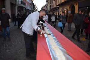 Borgomanero - La meringa realizzata nel pomeriggio di domenica 18 dicembre a Borgomanero, era lunga 261 metri, 8 mila porzioni. Comprendeva i corsi Roma e Garibaldi. La manifestazione, che rientra nel dicembre borgomanerese 2016, era organizzata da Comune, Pro Loco e Ascom.