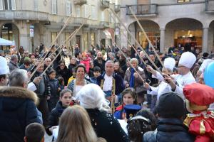 Borgomanero - Organizzato dalla Pro Loco di Borgomanero, dall’Oratorio Parrocchiale, dall’Associazione Pasticceri con il patrocinio del Comune di Borgomanero, sabato 10 febbraio, nel centro storico cittadino, ha preso il via il Carnevale 2018. Alle 15.30 “giochi di una volta” a cui è seguita, sotto l’egida dei pasticceri cittadini che recavano un mestolo di legno, l’incoronazione di “re Brutto ma Buono” e della Regina Zabetta, rispettivamente interpretati da Giuseppe Degasperise Mary Vercelli, che indossavano sfarzosi costumi realizzati da Damiana Boriolo. Un piccolo corteo, partito da Palazzo Tornielli al suono del tamburino Gian Luca Di Cerbo, si è recato in piazza Martiri, dove don Marco Borghi responsabile dell’oratorio ha incoronato i nuovi reali del carnevale. E’ seguita la merenda per tutti i bambini.