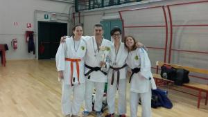 Novara - Nella giornata di domenica 28 febbraio si è svolto a Siziano (PV) il 3° Trofeo Lombardia dei 7 Kata di Judo che ha visto la partecipazione di atleti provenienti dalla maggior parte delle regioni nazionali. L’associazione sportiva dilettantistica Judo per Tutti è stata rappresentata nell’occasione da Elena Genovese e Simone Morlino per la specialità del Nage No Kata e da Greta Freguia eSergio Fiorini nella specialità del Ju No Kata. Simone ed Elena dopo un’ottima prova conquistano il secondo gradino del podio battendo 3 delle 5 coppie presenti in categoria mentre Greta e Sergio su 7 coppie presenti si devono accontentare del 4 posto. Alla fine delle premiazioni individuali, il Comitato Regionale Lombardia ha premiato tutte le società provenienti dalle regioni esterne con un trofeo. Alla Judo Per Tutti, presente il Maestro Tiziano Martinengo, è stata consegnata la coppa destinata al Piemonte che verrà consegnata al Delegato Provinciale Novarese Maestro Luigi Ferrari. Il presidente ringraziando i tecnici si è complimentato con gli atleti in gara. Seguite i nostri risultati su www.asdjudopertutti.altervista.org