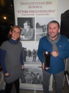 Novara - In occasione del 35° anniversario della prematura scomparsa del Dott. Ettore Poggi Steffanina, fondatore e Presidente del Tennis Club Piazzano, la Famiglia Poggi Steffanina, in accordo con il Tennis Club Piazzano, ha deciso di attribuire il 35° Trofeo di Tennis memorial “Dott. Ettore Poggi Steffanina" quale riconoscimento alla “Carriera” sportiva di una personalità del panorama tennistico novarese. Quest’anno la 35^ edizione del prestigioso e storico Trofeo di Tennis memorial “Dott. Ettore Poggi Steffanina" è stata assegnata a Gabriele Nuvolone, tennista e Giudice Arbitro della Federazione e consegnata dalla figlia Simona Poggi Steffanina, martedì 6 dicembre 2016 alle ore 22.30 presso il Tennis Club Piazzano, durante la Cena Sociale di fine anno alla presenza di 150 Soci del Club. Alla premiazione hanno partecipato i membri del Direttivo del Piazzano, il Presidente e Giudice Arbitro Domenico Foti, il vicepresidente Marco Morotti, il Consigliere Franco Allegra, il Giudice Martina Martinoli, il Maestro di tennis Fabrizio Petterino, l’Assessore allo Sport del Comune di Novara Federico Perugini, la Consigliera del Comune di Novara Elena Foti, il Delegato del Coni per la Provincia di Novara Giovanni Mainardi e il Presidente dei Veterani dello Sport Tito De Rosa.