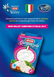 Novara - Dolce come il Gorgonzola, indimenticabile come ogni prima volta: lo Scudetto della Igor Volley sarà celebrato anche con un’iniziativa speciale del title sponsor del club, Igor Gorgonzola. L’azienda novarese, infatti, ha ideato una nuova e speciale confezione per il proprio gorgonzola dolce che sarà distribuita, da questa settimana, in tutti i supermercati. Sulla confezione, al classico “azzurro” sarà affiancato anche il fucsia, l’altro colore sociale della Igor Volley, oltre allo Scudetto tricolore e alla scritta “Igor Volley Campione d’Italia 2017”.