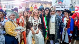 Novara - Straordinaria accoglienza a Torino per l'Associazione Re Biscottino Onlus, che ha partecipato al tradizionale corteo storico organizzato in occasione dei festeggiamenti patronali in onore di San Giovanni. Tre ore di sfilata per le vie del centro e poi, a conclusione, il tradizionale Farà di San Giovanni. Una cinquantina i soci dell'Associazione Re Biscottino onlus che hanno partecipato alla parata, partita da piazza Carlo Felice per poi snodarsi lungo Via Roma e davanti al Palazzo di Città, dove i rappresentanti dell'amministrazione comunale si sono uniti alle migliaia di figuranti provenienti da ogni angolo del Piemonte. La conclusione nella centralissima Piazza San Carlo, dove ad accogliere le maschere piemontesi c'era la sindaca, Chiara Appendino: "Siete bellissimi e siete tra i gruppi più numerosi! Benvenuti a Torino e complimenti per tutte le vostre iniziative".