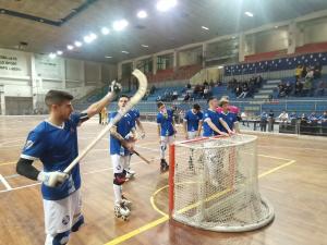Novara - Un pareggio contro la prima della classe per il debutto sulla panchina dell’Azzurra Novara di Paolo Campanati, nel 13° turno del campionato di A2 al Pala Dal Lago sabato 15 aprile contro la capolista Amatori Modena. Una partita equilibrata, corretta e piacevole, che ha visto i padroni di casa passare in vantaggio con il sempre bravo Brusa e subire il pari a 126” dalla fine grazie ad una prodezza di Pochettino. Di fronte una buona cornice di pubblico, con la curva decisamente più piena rispetto ad altre occasioni (bentornata ‘Gioventù Bruciata’!) le squadre scendono in campo con questi quintetti: i locali con Gilli, Brusa, Ferrari, Mattia e Andrea Gori; i ‘canarini’ invece con: Moncalieri, Cervi, Siberiani, Pochettino e Beato. Nel primo tempo sembra di assistere ad un incontro di boxe, dove i due contendenti se le suonano di santa ragione, ma nessuno dei due ha il sopravvento sull’altro. La chance più importante è comunque per l’Amatori, che dimostra in campo di meritare il 1° posto in campionato: l’arbitro Molli esibisce un blu (forse severo) a Bergamin e il tiro diretto di Pochettino è respinto dall’eccellente Gilli (il migliore in campo). Poco prima l’Azzurra non aveva approfittato della superiorità numerica per il blu esibito invece a capitan Beato.