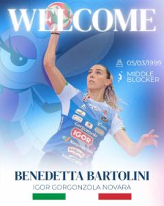 Novara - Arriva dalla Toscana, via Perugia, il primo volto nuovo della Igor Volley 2026-2027. Si tratta della centrale Benedetta Bartolini, classe 1999 e originaria di Cecina, che può vantare già nove stagioni di serie A da protagonista e che si è legata al club fino a giugno 2027. Cresciuta nel fulgido vivaio romano del Volleyrò, ha esordito a Olbia in A2 nel 2017-2018 legandosi poi per un triennio a Montecchio, sempre in serie cadetta. Nel 2021-2022 il debutto in A1 con Scandicci (con cui ha vinto la Challenge Cup), poi quattro stagioni a Perugia di cui tre nella massima serie. Nel 2023-2024 ha conquistato la “doppietta” con la Coppa Italia di A2 e la promozione in A1.