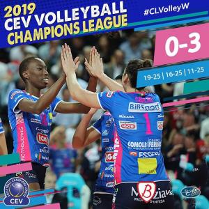 Reagisce Lodz, che si porta 4-1 con Brakocevic-Canzian a segno tre volte, Novara risponde e sui turni in battuta di Chirichella e Carlini matura un clamoroso break di 1-15 per le azzurre: Plak impatta a muro (4-4), Egonu in attacco e Chirichella in battuta (ace) fanno 4-9, Brakocevic-Canzian spezza il parziale (5-9) ma due ace di Carlini e due muri di Veljkovic trascinano le azzurre al 5-16. Lodz prova ad alzare la testa a muro (12-19, Polanska) e con un ace di Stoltenborg (14-20) ma tre punti in successione di Chirichella valgono il set ball (16-24), concretizzato poi in maniout da Plak per il 16-25.