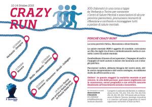 La corsa, aperta a tutti, è capitanata dall’abile runner, Alberto Taverna, psicologo consulente ASL che percorrerà il Piemonte in diverse tappe, accompagnato da operatori e da utenti dei Centri di Salute Mentale dei territori attraversati, dalle famiglie e da chiunque abbia voglia di correre. 300 chilometri in un viaggio a tappe da Verbania a Torino per conoscere i Centri di Salute Mentale delle province piemontesi, promuovere momenti di riflessione e confronto e incoraggiare tutti a parlare di salute mentale.