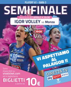 Novara - Sarà ancora dentro o fuori: la Igor Volley di Stefano Lavarini si prepara per la sfida decisiva di gara tre di semifinale dei playoff Scudetto. Domani alle 20.30 al Pala Igor (diretta Sky Sport Arena), le azzurre ospiteranno Cuneo per il match di spareggio dopo il successo novarese in gara uno e quello brianzolo in gara due. In palio un posto nella finalissima con Conegliano, che in due partite ha superato Scandicci nell'altra semifinale.