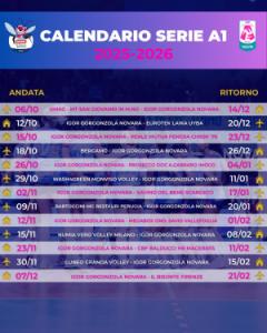 Novara - Partirà da Cervia, “casa” della “matricola” San Giovanni in Marignano, il prossimo 6 ottobre, la nuova stagione ufficiale della Igor Volley di Lorenzo Bernardi. Le azzurre scenderanno in campo nel cuore della Romagna per l’esordio in campionato, rimandando a sei giorni più tardi il debutto al Pala Igor, per il primo di due derby ravvicinati con Busto Arsizio e Chieri, che sarà ospite a Novara in infrasettimanale il 15 ottobre. Il girone di andata si chiuderà in casa, il 7 dicembre, contro Firenze e nel capoluogo toscano si chiuderà la stagione regolare il 21 febbraio, prima dei Playoff. La post season si concluderà poi entro il 26 aprile, data potenziale dell’ultima sfida della finalissima. Da segnalare il “classico” con Bergamo a illuminare il Natale azzurro, con la Igor Volley impegnata tra le mura amiche nel turno di Santo Stefano.