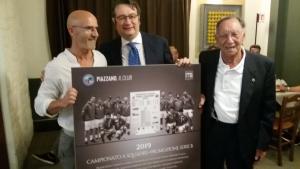 Novara - Giovedì sera presso il Ristorante annesso al Circolo in via Patti, il TC Piazzano ha festeggiato assieme ai suoi sponsor sostenitori, ai rappresentanti delle istituzioni novaresi, ai suoi dirigenti e tecnici, la recente promozione della sua squadra in serie B. Pur atteso da altri impegni improrogabili, non è mancato il sindaco Alessandro Canelli, passato prima dell’inizio della serata per un saluto, ma rappresentato poi dell’Assessore allo Sport, Marina Chiarelli. A fare gli onori di casa il presidente, Domenico Foti, ed il Direttore Generale, Marco Morotti, che nei loro interventi hanno ringraziato i giocatori, purtroppo assenti per impegni sportivi in atto, per aver finalmente coronato un sogno che il Circolo agognava da tempo ma, hanno sottolineato che, senza l’organizzazione interna curata dal D.S. Roberto Rosso Chioso, quella tecnica del D.T. Matteo Sacchi e quella sul campo nelle giornate di gara del capitano Fabio Visentin e soprattutto, davanti a tutto, l’appoggio degli sponsor, questo obbiettivo non si sarebbe potuto centrare. Ma il presidente Foti non si è fermato lì e si è lasciato andare a lanciare un nuovo messaggio: “Non vogliamo accontentarci, la A2 non deve essere un miraggio. L’anno prossimo ci proviamo!”. E dopo aver scoperto il quadro che commemora lo straordinario traguardo e che farà bella mostra di se a fianco di quelli già presenti nella Hall of Fame della Società, è stata la Delegata Coni di Novara, Rosalba Fecchio a comunicare ufficialmente che il Club Piazzano è stato insignito della Stella di Bronzo al merito sportivo del Coni e che il suo presidente si potrà fregiare di quella d’Argento. Le onorificenze saranno consegnate nel tradizionale appuntamento delle premiazioni Coni del prossimo dicembre.