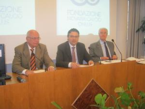 Novarello - Un evento nell'evento... la presentazione ufficiale della Fondazione Novara Calcio, ultima 'creatura' voluta e sostenuta dalla società azzurra, che sempre più si sta distinguendo per capacità propositiva e voglia di essere sempre più presente e vitale nel territorio. La conferenza stampa per illustrare il progetto si è tenuta la sera di giovedì 29 marzo nell'auditorium del Villaggio Azzurro a Novarello. Molti i presenti illustri: l'a.d. del Novara Calcio Massimo De Salvo, il presidente Carlo Accornero, quindi Eliana Baici (Università del Piemonte Orientale), don Franco Finocchio (responsabile dello Sport per la diocesi novarese), Carloalberto Ludi (capitano del Novara), Giampaolo Ferrari (imprenditore), Franco Zanetta (presidente della Fondazione Banca Popolare di Novara), Daniela Sironi (presidente della Comunità di S. Egidio di Novara), l'assessore provinciale Alessandro Canelli e quelli comunali Gianni Agnesina e Augusto Ferrari.