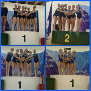 Altri titoli nazionali con medaglia d’oro nelle classifiche di specialità Corpo Libero per l’esuberante esecuzione di Veronica Trovati nelle Allieve Super, per l’eleganza precisa di Giulia Gianetti e per Margherita Veggiotti, allieve - Top Level A2. Ma il palmares del sodalizio novarese non si ferma qui: alla giovanissima Alessia Uglietti medaglia d’argento nelle Parallele Asimmetriche e medaglia di bronzo al corpo libero mentre Matilde Garito nella categoria Ragazze Super sale sul Terzo gradino del podio nella Specialità Volteggio.