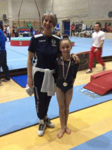 La prima ginnasta novarese a scendere in campo gara nel livello L/1, riservato alle ginnaste nate nell’anno 2009/2010, è stata Elisa Piccolini, al suo esordio. La giovane ginnasta stupisce alla sua prima gara per presenza e controllo dell’emozione: si mette ben in mostra a tutti gli attrezzi, nonostante la tensione, riesce a non commettere errori. La classifica finale ha certamente ricompensato la nostra Elisa, che ci ha regalato una grandissima soddisfazione salendo sul terzo gradino del podio, incoronata con una bellissima medaglia di bronzo prevaricando ben 26 ginnaste partecipanti.