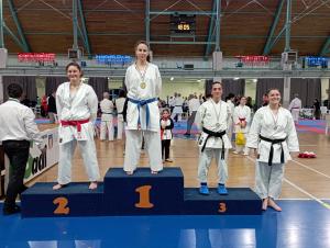 Nelle foto la premiazione della ormai veterana Cama Tiziana che in ogni gara, dopo ben 17 anni di pratica, dimostra sempre con grande umiltà e preparazione agonistica di essere ancora una grande Karateka.