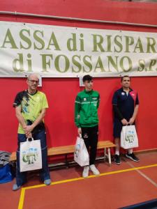 Nel fine settimana appena trascorso Diego Aguiari ha partecipato al torneo libero di Fossano (Cn). Ottima prova del nostro portacolori che ottiene il terzo gradino del podio nella gara riservata ai sesta categoria a conferma dei continui miglioramenti ottenuti negli ultimi mesi! Complice un po’ di stanchezza e la maggiore forza degli avversari Diego non raggiunge il tabellone ad eliminazione diretta nel torneo di quinta categoria.
