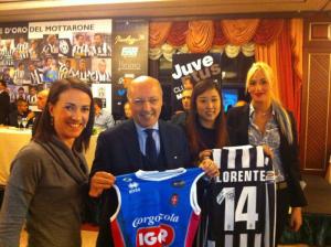 Novara - Una serata di festa aperta e chiusa con due graditissime sorprese: la Igor è stata protagonista all’edizione 2013 della “Castagna d’oro”, premio assegnato dallo Juventus Club Mottarone. Una delegazione azzurra (guidata da capitan Rosso e composta anche da Alberti, Kim, Casillo, Tokarska, Mollers, Vanzurova e Lombardo) accompagnata dal patron Fabio Leonardi, dalla presidente Suor Giovanna Saporiti, dal d.g. Enrico Marchioni, dalla team manager Paola Gatti e dal responsabile dell’area amministrativa Fabrizio Zucconi, ha preso parte alla cerimonia di premiazione, ricevendo uno specialissimo dono dalla Juventus Football Club. La società bianconera, rappresentata dal d.g. Giuseppe Marotta e dai calciatori Arturo Vidal (premiato con la Castagna d’oro 2013) e Andrea Barzagli, ha portato alla Igor la maglia di Fernando Llorente, con un autografo e dedica per la regista azzurra Mi Na Kim, sua grande fan. «Un regalo eccezionale, una bellissima sorpresa – spiega Enrico Marchioni – e colgo ancora una volta l’occasione per ringraziare Marotta e la Juventus tutta per la gradita sorpresa. Mi Na è una grandissima fan di Llorente e la società bianconera ha voluto riservare a lei, e a tutta la nostra società, questo pensiero speciale». In cambio, la società bianconera, ha ricevuto dalle mani di capitan Rosso una divisa azzurra della Igor, firmata dalle giocatrici: «Abbiamo voluto ricambiare il bel gesto e la Juventus ha apprezzato molto l’iniziativa. Penso sia doveroso anche ringraziare lo Juventus Club Mottarone, che ci ha permesso di partecipare all’iniziativa e che ci ha resi protagonisti della serata e non semplici spettatori» chiosa il dirigente azzurro.