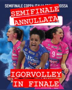 Stante l’oggettiva impossibilità di rinviare l’intera competizione, la Reale Mutua Fenera Chieri non potrà disputare la Semifinale in programma oggi alle ore 18:30, consentendo alla Igor Gorgonzola Novara di accedere così d’ufficio alla Finale della Coppa Italia Frecciarossa 2022, programmata per le ore 17:30 del 6 gennaio 2022. Il match, contro la vincente della semifinale tra Conegliano e Busto Arsizio, sará trasmesso in diretta su RaiDue.