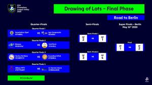 Le semifinali seguiranno il tabellone, con la vincente di Fenerbahce – Novara che sfiderà la vincente di Dinamo Mosca – Vakifbank mentre la vincente di Scandicci – Eczacibasi incrocerà quella di Stoccarda – Conegliano.