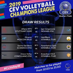 GARE DI RITORNO (19-21 marzo): Igor Gorgonzola Novara - Allianz MTV Stuttgart (GER); VakifBank Istanbul (TUR) - Dinamo Moscow (RUS); Fenerbahce Opet Istanbul (TUR) - Savino Del Bene Scandicci; Eczacibasi VitrA Istanbul (TUR) - Imoco Volley Conegliano