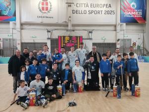 Novara - Il 2024 straordinario dell’Azzurra Hockey Novara, l’anno della promozione in serie A1, si chiude con uno stop al Pala Dal Lago contro il fortissimo Trissino, ma salutato dagli applausi convinti e meritati da parte del pubblico presente domenica 22 dicembre nel palazzetto. Di fronte ad una buona presenza di spettatori sugli spalti, Punset inizialmente deve rinunciare all’infortunato Cardella, cui si è aggiunto all’ultimo momento un Ortiz a mezzo servizio per un problema alla caviglia. In campo il tecnico catalano manda: Scarso Granados, Gabriele Gavioli, Petrocchi, Brusa e Vega. Dall’altra parte l’allenatore Da Costa non può contare su Cocco e opta per: Sgaria, Malagoli, Garcia Santos, Mendez e Davide Gavioli. Il 1° tempo è molto tattico, con gli ospiti che hanno un gran possesso di palla, ma tutte le conclusioni vengono ben ribattute dalla difesa novarese, con un portiere Scarso Granados in gran spolvero (ancora una volta il migliore in campo) e pronti a ripartire in contropiede. A 4’ dalla fine però Davide Gavioli trova l’angolo giusto e dà un dispiacere alla squadra del fratello Gabriele. L’Azzurra non demorde e dimostra di aver gran carattere e di aver preparato la sfida molto bene e a 24” dalla sirena il ‘Colo’ Vega beffa Sgaria e pareggia i conti.