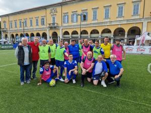 Il sorriso sui volti dei ragazzi della A.S.H.D. impegnati nella partita di Walking Football è stato un toccasana sia per loro, sia per i giocatori del Novarello WF, ma anche il pubblico che si è fermato nella piazza ad osservare l’esibizione ha apprezzato questo incontro, incuriosito dalle regole di questo gioco che è una derivazione del calcio e dal fatto che la composizione di squadre miste ha comunque fatto si che il risultato della partita sia sempre stato in bilico. Anche l’arbitro Giovanni Morona si è calato nella parte di festa e divertimento sul terreno di gioco, essendo un pochino elastico nel perdonare qualche lieve fallo dei ragazzi con disabilità, ma essendo giustamente rigido con i normodotati che le regole le conoscono benissimo.