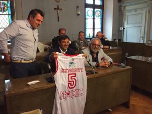 Novara - Nel corso di una affollata conferenza stampa in municipio la Mamy Basket si è presentata alla città di Novara che rappresentarà, a partire da domenica 27 alle 17 allo Sporting contro Pistoia, nel campionato di serie B. Un progetto sportivo che assume una forte connotazione sociale, come hanno spiegato il sindaco Andrea Ballarè e l'assessore allo sport Rossano Pirovano, che si è molto speso per avviare questo nuovo percoso del basket cittadino. «L'obiettivo - hanno spiegato - è quello di costruire una rete di tutte le società che svolgono attività nel basket giovanile, a partire dal minibasket. Un coinvolgimento che è già cominiciato con alcune società e che ambisce a riunire tutte le società prersenti sul territorio della provincia di Novara. Abbiamo sostenuto questo progetto e lo stiamo accompagnando al raggiungimento degli obiettivi preposti».
