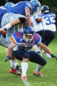 Novara - Altra prova superlativa dei Lancieri di Novara che superano con un rotondo 34 a 12 gli Alfieri di Asti e accedono alle semifinali. Non si arresta la marcia dei Lancieri di Novara, che nell’homefield di Piazza Donatello, travolgono gli Alfieri di Asti e conquistano il pass per le semifinali del campionato IAAFL. Una partita mai veramente in discussione, con la compagine astigiana che resiste solo un tempo sotto i colpi dei Lancieri. L’avvio per la squadra di casa èperòdi quelli shock, con un touch down subìto a pochi minuti dal fischio iniziale. Ma dopo essere andati sotto i Lancieri si scrollano di dosso la pressione, e, nonostante numerose seconde linee in campo, tra i quali anche molti giovanissimi, i blue-shoulder prendono subito in mano le redini dell’incontro e con la coppia Zanforlin- Rolando, autori di due touch down a testa, ribaltano le sorti del match, indirizzando la partita a proprio favore. Sugli scudi anche il giovane running back dell’Under 17, Yeaboah Bismarck che mette a segno i sei punti nella sua prima azione in campo. Va a referto anche l’altro rookie Andrea Pricoco che ha inciso con ben due extra point. Infine da non dimenticare la splendida azione che porta alla marcatura anche Eros Mozzillo, il Quaterback dei Lancieri, trova un’autentica invenzione da due punti. Nonostante il risultato fosse prevedibile, visto l’impeto e la coriacea difesa dei giocatori novaresi, tutti gli occhi sono puntati ora sulla prossima partita, in programma sabato 4 giugno alle ore 20:30 presso l’homefield di Novara in Piazza Donatello. Tra le mura amiche, i Lancieri, disputeranno quella che per i piùèuna vera e propria finale anticipata, contro i temibili Guerrieri di Ajaccio, in un incontro che si preannuncia spettacolare e molto combattuto.