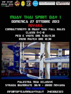 Novara - Domenica 27 ottobre presso la palestra New Xclusive di Novara (strada Biandrate 38/B) si svolgerà il primo "MUAY THAI SPIRIT DAY 1". Durante l'evento ci saranno Gare con combattimenti di muay thai riservata alle classi N-C-B. Peso e visite mediche: ore 9.30/11.30; inizio match ore 12.30. Le iscrizioni si accetteranno fino a sabato 19 ottobre, per far sì che entro domenica sera si possano comunicare gli abbinamenti ed eventualmente recuperare qualche match che salterà in settimana.