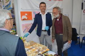 Novara - Sergio Poletti e Marco Calzone, rispettivamente Amministratore Delegato e Direttore della produzione del caseificio Palzola di Cavallirio, sono stati ospiti nella giornata di sabato 4 giugno della Fiera di Novara. Per l’occasione i rappresentanti della Palzola non solo hanno proposto la degustazione del famoso erborinato, ma hanno anche fatto conoscere “Nino il vitellino” al grande pubblico. Infatti erano in bella mostra i disegni vincitori del concorso indetto dalla Palzola per le scuole elementari della provincia di Novara. In questo frangente, il vitellino ha dimostrato di essere nel cuore dei bambini.