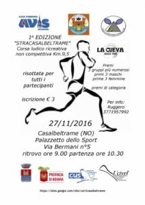 Casalbeltrame - Si svolgerà domenica 27 novembre 2016 la prima edizione della “StraCasalbeltrame”, una corsa podistica non competitiva di circa 10 km con un percorso completamente tracciato nel territorio del Comune di Casalbeltrame, metà su strada asfaltata e metà su sterrato. Si correrà in una sorta di anello con partenza e arrivo al Palazzetto dello Sport di Casalbeltrame, con due passaggi all'interno del Cascinale dei Nobili, sede del Museo Etnografico dell'Attrezzo Agricolo 'L Civel. Le registrazioni si effettueranno la mattina stessa alle ore 9 (costo di iscrizione € 3), mentre la partenza è prevista alle ore 10.30. Al termine della corsa sarà offerta a tutti una risottata (risotto al gorgonzola) a cura della Pro Loco di Casalbeltrame.