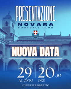 Novara - A causa dell’allerta meteo prevista per la giornata di mercoledì 20 agosto, si comunica che la presentazione ufficiale del Novara Football Club 2025/26 è stata rinviata a venerdì 29 agosto. Il programma della serata rimarrà invariato: la suggestiva cornice del Cortile del Broletto aprirà i cancelli dalle ore 20 per permettere a tutti di prendere posto ed attendere l’inizio della presentazione previsto per le ore 20.30.