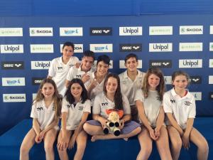 Novara - Un oro, tre argenti e un bronzo per gli Esordienti A della Libertas Team Novara nella prima tappa della Coppa “Rio - Summer Edition” di categoria ospitata dalla Piscina Rivetti di Biella. Protagonista assoluto è stato il tredicenne Marco Centra primo nei 100 dorso, secondo sia nei 200 dorso sia nei 200 misti. Piazza d’onore anche per il coetaneo Alessio Moranda nei 100 farfalla. Moranda ha sfiorato il podio anche nei 100 rana conclusi al quarto posto e nei 200 misti dove è finito sesto. Il bronzo non è invece sfuggito al dodicenne Mattia Dell’Olmo, terzo nei 100 farfalla e poi settimo nei 200 farfalla. Tra gli altri piazzamenti in top ten, sesta Lucrezia Piantanida nei 100 farfalla. Settima piazza per Veronica Milanino nei 100 rana e per Chiara Saronne nei 100 farfalla. Ottavo tempo sia per la staffetta 4x50 misti composta da Centra, Moranda, Saronne e Marta Braghin sia per la staffetta 4x50 stile libero i cui frazionisti sono stati sempre Saronne, Braghin, Centra e Flavio Mera. Quest’ultimo ha poi fatto segnare la nona prestazione nei 100 sl. A Biella hanno gareggiato, per la Libertas, anche Emma Cirichelli, Irene Infantino, Matteo Fang, Gaetano La Iacona e Giorgio Pluchino.