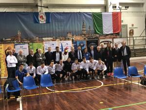 Tutti gli atleti con lo staff sono poi scesi sul parquet del “Dal Lago” come una vera e propria marea bianca azzurra accompagnati dalla mascotte della società per le foto di rito prima del saluto finale sancito nell’esibizione dell’inno “Lo spettacolo siamo noi” cantato da Alessia Naccari.