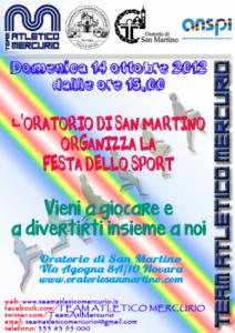 Novara - Domenica 14 ottobre l'Oratorio di San Martino di Novara organizza la VI edizione della Festa dello Sport. Il Team Atletico Mercurio rappresenterà l'atletica e sarà presente per dare la possibilità a tutti i bambini di provare le discipline di questo sport divertendosi e giocando insieme. "Sarà presente la squadra della categoria Esordienti (6-11 anni) del nostro team - spiegano dalla società novarese - inoltre don Gian Mario Lanfranchini, responsabile dell'Oratorio di San Martino, premierà gli atleti Linda Olivieri e Simone Impelliccieri che hanno preso parte con la rappresentativa piemontese, lo scorso week end, ai campionati italiani per le categorie cadetti (14-15 anni)". L'appuntamento è presso l'Oratorio di San Martino in Via Agogna 10 a Novara dalle ore 15.