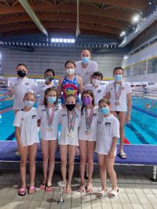 Novara - Chiusura di stagione con il botto per la squadra Esordienti B della Libertas Nuoto Novara, protagonista al campionato piemontese di categoria valido anche come Campionato Italiano su base regionale. I risultati ottenuti dalla giovanissima truppa guidata dal tecnico Claudio Bellomi, con ben 11 medaglie e sette titoli regionali, hanno consentito alla Libertas di piazzarsi al quarto posto nella classifica a squadre. Tutto ciò in attesa della graduatoria nazionale dei tempi realizzati nelle varie prove regionali emanata da parte della Fin per assegnare i titoli italiani maschili e femminili di ogni specialità. Protagonista delle gare svoltesi tra il 12 ed il 13 giugno a Torino è stata Emma Crepaldi, classe 2011 e campionessa regionale nei 50, 100 e 200 rana firmando quest'ultimo caso anche il nuovo record societario. Tre medaglie anche per la coetanea Martina Bottega vincitrice nei 200 dorso (con record sociale) nei 400 sl e poi terza nei 100 dorso. Due podi per Silvia Perotti (oro nei 50 dorso e argento nei 50 sl, oltre che quarta nei 100 sl) e per Diego Schiavo (2010) primo nei 200 rana, terzo nei 100 rana e a sua volta “medaglia di legno” nei 50 rana. Bronzo, infine, nei 100 farfalla per Alessio Signorini (2010) che ha mancato di poco il podio nei 400 sl terminati al quarto posto e ha concluso le sue fatiche con l'ottavo tempo nei 100 sl. Alle gare di Torino hanno preso parte anche Ginevra Maria Ceriotti, Valentina Lenaz, Carlo Montesano, Stefan Puskovic, Nicholas Segala, Anna Maria Soares Galli e Maya Stanczyk: "Nell'ultima gara stagionale la squadra ha dato il massimo - evidenzia soddisfatto il tecnico degli Esordienti B della Libertas Nuoto Novara, Claudio Bellomi - Non ricordo a memoria un'altra occasione in cui siamo arrivati quarti in Piemonte nella classifica a squadre in questa categoria. Ad di là del numero di medaglie, comunque cospicuo, va sottolineato che questo piazzamento è stato ottenuto con soli 12 atleti che hanno gareggiato. Nonostante ciò, siamo riusciti a stare davanti a squadre che hanno mandato in acqua 30 o 40 rappresentanti. Ciò denota la qualità e la bravura che i bambini hanno saputo dimostrare in acqua. Ora aspettiamo la pubblicazione della classifica generale nazionale dei tempi da parte della Fin: credo che possiamo avere concrete speranze di medaglia anche a livello italiano".