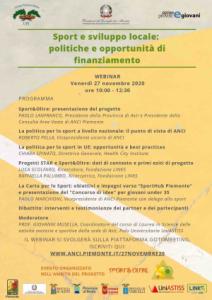 Novara - Alle 10 del 27 novembre si terrà l'incontro "Sport e sviluppo locale: politiche e opportunità di finanziamento", seconda parte del corso gratuito sulla piattaforma GoToMeeting, riservato ai giovani allenatori. "L'iniziativa – spiega il consigliere delegato allo Sport della Provincia di Novara Ivan De Grandis – nel progetto “Sport&Oltre”, promosso da Anci Piemonte e del quale la Provincia è partner con le Provincia di Vercelli, la Provincia Di Biella e la Provincia di Asti. Si tratta di un’iniziativa di promozione sportiva che ha l'obiettivo generale di contribuire alla realizzazione di attività sportive che consentano l'accesso allo sport di un sempre più ampio gruppo di giovani. Ulteriore azione di “Sport&Oltre” è l’organizzazione di un concorso di idee, con premiazione finale, riservato ai giovani. L’emergenza sanitaria ha purtroppo fermato lo sport, ma l'Amministrazione provinciale, in questo periodo, continua a sostenerlo e a investire per il futuro, puntando sulla #formazione degli #operatori, affinchè chi pratica sport, soprattutto i giovani, siano e abbiano punti di riferimento qualificati".