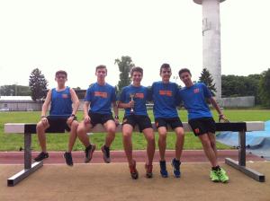 Novara - Prestigioso sesto posto regionale conquistato dalla squadra novarese nella categoria Cadetti (2000-01), a Novara, sabato 23 e domenica 24 Maggio 2015, ai Campionati di Società piemontesi. Per completare la squadra è stato necessario schierare gli atleti su 14 discipline diverse. Il miglior risultato tecnico arriva da Andrea Calgaro (2001) che nei 100 HS conquista il secondo posto con 14"9, abbassando il proprio primato personale. Cristian Bogliano (2001) corre gli 80 m in 10"8 e i 300 m in 42"9, Umberto Alfano (2000) i 300 HS in 46"7 e nel salto in alto arriva a 1,35 m, Leonardo Paglino (2000) nei 1000 m corre in 3'20"1 e nei 1200 siepi in 4'25"8, Marc Bua (2001) nel salto in lungo atterra a 4,26 m e nel giavellotto ottiene 18,63 m, Giorgio Olivieri (2001) nel disco lancia 11,07 m e nel salto triplo salta 7,76 m, Luca Bonaccorso (2000) nel getto del peso 4,98 m e nel lancio del martello 8,99 m, Mattia Linarello (2001) corre gli 80 m in 13"0, infine la staffetta 4x100 ottiene il terzo posto con il quartetto Calgaro, Alfano, Paglino, Bogliano con il tempo di 48"4.