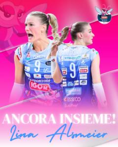 Novara - Ancora una conferma per il reparto “martelli” della Igor Volley: la schiacciatrice tedesca Lina Alsmeier vestirà per il terzo anno consecutivo la maglia azzurra. Arrivata nell’estate del 2024 da Firenze, sua prima squadra italiana, la giocatrice classe 2000 darà continuità al reparto novarese, al quale ha garantito nelle sue due stagioni con il club, affidabilità in seconda linea unito a un contributo significativo in fase realizzativa. Per lei un contratto con scadenza 2027, con opzione sulla stagione successiva.