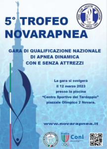 Novara - Torna il Trofeo NovarApnea, gara di qualificazione nazionale di apnea dinamica, organizzato per la quinta volta dal Primo Club Lacustre Sommozzatori. Saranno 27 squadre, con 218 atleti di tutte le categorie, che si sfideranno in oltre 230 gare nella giornata di domenica 12 marzo 2023 alla piscina del Centro Sportivo Terdoppio di Novara. Gli atleti si cimenteranno a percorrere sotto la superficie dell'acqua, senza respirare, distanze incredibili nuotando a rana, con le pinne o con la monopinna. Appuntamento quindi a partire dalle 9.30 alla piscina del Pala Terdoppio per vedere gli atleti di livello nazionale e internazionale sfidarsi in vasca. Ingresso gratuito.