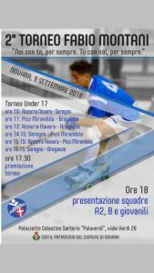 Novara - Domenica 9 settembre si terrà la seconda edizione del Trofeo "Fabio Montani": presso l'impianto "Palaverdi"; a partire dalle ore 10 avrà luogo un quadrangolare riservato alla categoria U17. "Oltre alla nostra formazione - spiegano dall'Azzurra Novara - parteciperanno al torneo le rappresentative di Hockey Breganze, Seregno 2012 e Hockey Pico Mirandola che ringraziamo di cuore per aver accolto con entusiasmo il nostro invito! Al termine, dalle ore 18, verranno presentate le formazioni delle varie categorie con i relativi allenatori. Importanti novità riguarderanno le nostre squadre Senior: la serie A2 d Erasmo Marcon e la serie B di Mino Battistella!"