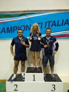 Novara - Ai Campionati italiani Veterani giocati a Porto Santo Stefano (GR) dal 12 al 17 giugno grande impresa di Elisabetta Loaldi che vince la medaglia d'oro nella gara di doppio misto,in coppia con Adayemo Fatai del TT Circolo Prato,dopo aver sconfitto in finale la forte coppia composta da Lia Paola Condorelli del TT King Pong di Roma e Palladino Gerardo del TT Torre del Greco. Grazie a questa affermazione salgono a 14 le medaglie d'oro vinte dalla nostra portacolori ai Campionati Italiani! Non completamente appagata Elisabetta conquista anche l'argento nella gara di doppio femminile,in coppia con Rosaria Mauriello del Cral Dipendenti Comune di Roma,e la quinta posizione nel singolo femminile!
